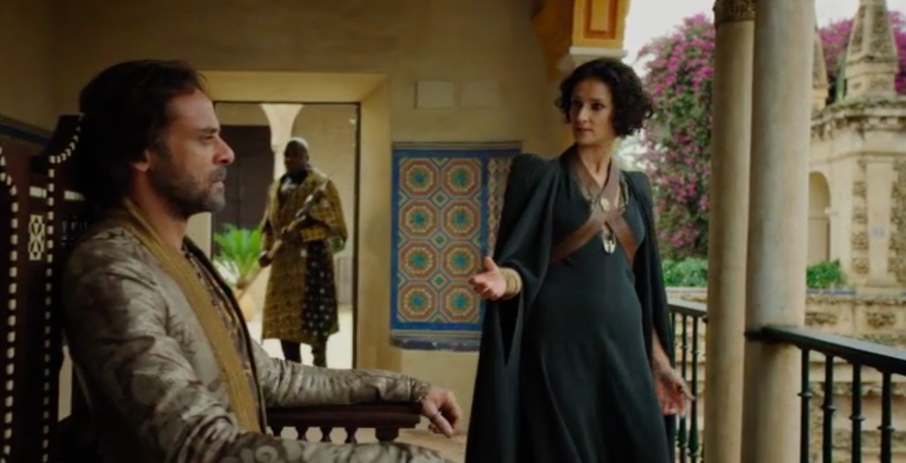 Christopher: As with Braavos, they’re not scrimping on the sets and effects budgets. The Water Gardens, Prince Doran Martell’s favourite place to hang, has been rendered in nothing less than exquisite detail. Dorne is one of the more interesting places in the Seven Kingdoms, not least because it is the one region that does not conform to the typical fantasy convention, bequeathed by Tolkien, of an alternative world that bears a striking resemblance to medieval northern Europe. Sad to say that GRRM does indulge in some typical clichés: the hotter climes are inhabited by similarly hot people, both in terms of their looks and temperaments, but even so it makes for a welcome change from the usual mail-clad Saxons that have pervaded the story so far. Oberyn and Ellaria added depth and complexity to season four—I look forward to seeing what their broader families bring to season five.