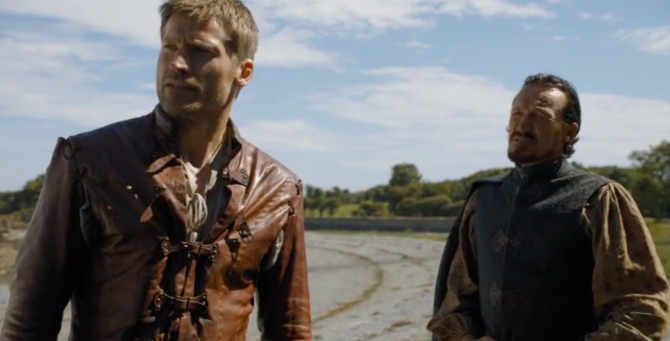 Also entertaining is the new Bronn/Jaime pairing, which as you’ve said above, doesn’t take place in the books. As viewers will recall, in season 4 Bronn was going to be Tyrion’s champion against the Mountain, but Cersei bribed him with a marriage offer that would raise his station. The price? He wasn’t allowed to help Tyrion. He took the bribe, but was up front with Tyrion that he did so. Tyrion, sitting in his cell, assured Bronn that there were no hard feelings, because Bronn had never hidden the fact that he was an opportunist, and that that quality is what Tyrion liked about him.