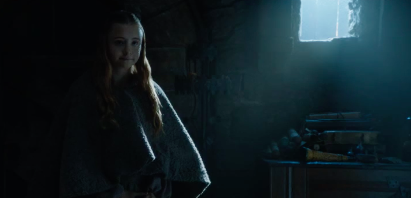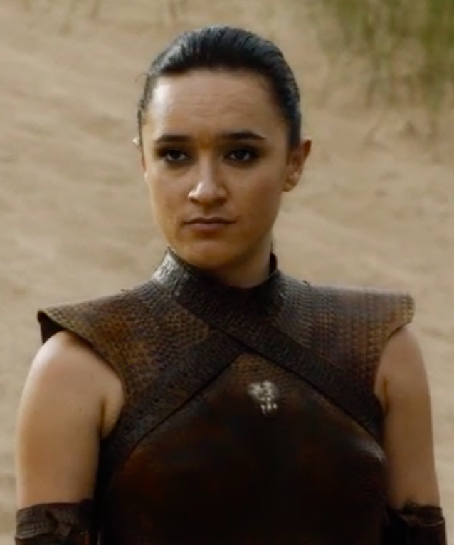 That being said, I loved the poignancy of the scene preceding Melissandre’s seduction attempt. We’d just watch Stannis et al watching Jon training men to fight—and listened to Queen Selyse’s blinkered prejudices against bastards and cripples—but here we see him playing the tedious role that every administrator knows: paperwork. Sending out requests for men to a legion of petty lords, few of whom Jon has heard of. But he balks at sending a letter to Roose Bolton in a moment that ironically parallels Sansa’s anguish of last episode. There was little in the series to hint at Jon and Sansa’s relationship; in the novels, when Sansa thinks of him, it’s in dismissive terms. He’s just the bastard. Arya of course loves Jon, because she does not care about the social niceties that preoccupied pre-King’s Landing Sansa. But Sansa had basically a milder version of her mother’s antipathy. So it makes for an interesting twist that they’re both in a position of needing to kowtow to the new Warden of the North, and that both of them do so with murder in their hearts.