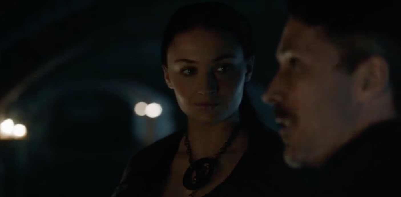 It’s a lovely fairy tale, but will any of it come true? Does Baelish actually believe any of it? I noticed in this scene one slip that he made, something he said that differed from the previous episode. When he’s reassuring Sansa that this will all work out in her favour, he says, “You’re the last surviving Stark.” But in the previous episode he’d said, “You’re the eldest surviving Stark,” as if he somehow knew about Bran and Arya being out there somewhere. Did he slip then? Is he slipping now? Is he playing her? One must always remember that with Baelish, no matter what, he never puts another person before his own political maneuverings. She’s right: she did learn from the best of them. But will her learning be enough to win over Ramsay Bolton? He, after all, is inhuman.