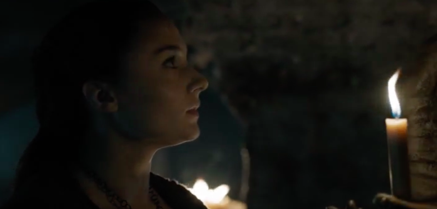 And then another nice piece of editing: after Bronn extols the virtures of Dornish stallions, we see a veiled rider galloping through the surf. As it turns out it is Ellaria, meeting up with Oberyn’s bastard daughters to plot against both the Lannisters and their own prince.