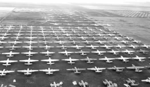 While Roosevelt’s shrewd leadership of the U.S. through WWII should not be discounted, Sam’s historical factoid has more to do with propping up the Aaron Sorkin Great Man Theory of History: Oratorical Edition™. But this historical actuality does offer a useful thumbnail sketch of the sheer size and scope of the United States’ industrial capacity when totally mobilized. Consider the haunting images of planes and ships mothballed after the war, all of which had been churned out by American factories and which were now the detritus of a massive war effort.