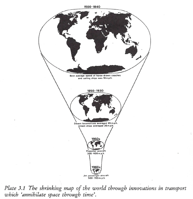 But, you might ask, what does all this have to do with postmodernity? Well, everything … what I’ve been describing are a series of paradigm shifts in travel and communication technology, as well as the United States’ transition from industrial capitalism to full-bore consumerism. These changes were not just material, but symbolic as well, as the U.S. created of them a counter-narrative to Communism. Consumerism became understood as patriotic: the wealthier Americans grew, the more cars and appliances they bought, the more the American Dream could be held up as the obvious virtuous alternative to dour Soviet unfreedom.