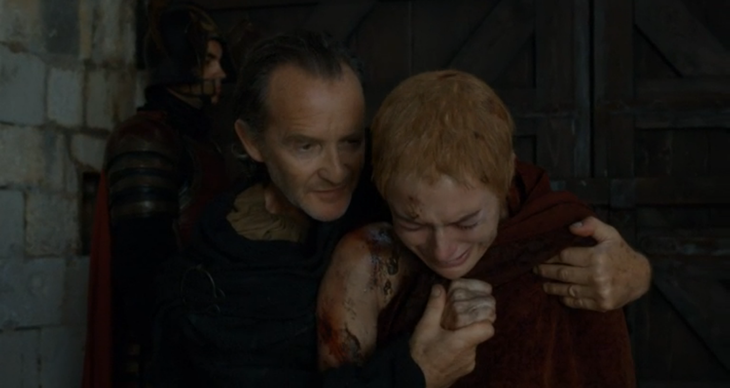 By contrast, Winterfell represents the accrual of blood and pain and sacrifice that comes with war. The Starks limp into Winterfell battered and nearly broken. The defeat of Ramsay came at a staggering cost, and everyone is somehow compromised. Winterfell is Sansa’s home, yet it will also always be the site of her rape and systematic brutalization at Ramsay’s hands. For all they know, Jon and Sansa are the last of the Stark children. Rickon was killed. Robb and Catelyn were murdered by the people who took Winterfell from them. Jon came within a hairsbreadth of losing everything. The last of the giants gave his life for people who, a mere year ago, would have happily seen him dead. Davos looks with loathing at Melisandre, who he now knows was Shireen’s murderer. And lest we forget, victory came at the cost of Sansa putting her trust in the man who handed her over to Ramsay to start with. We don’t know what the cost of that compromise will be—what will Littlefinger name as his price?