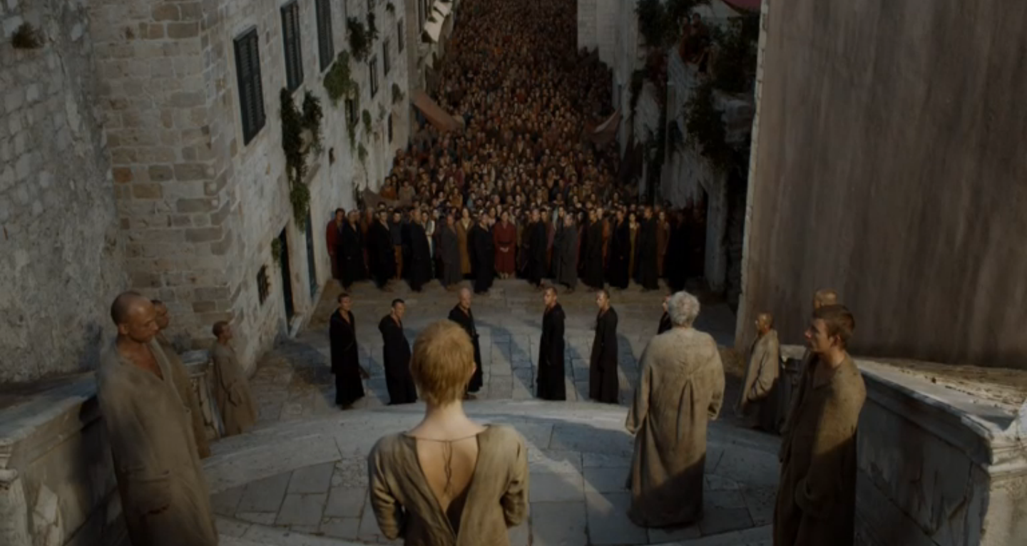 Where did the season go? We’re at the penultimate episode, and as in every season of this show, the second-last episode features some pretty spectacular stuff, both narratively and visually: the death of Ned Stark, the Battle of the Blackwater, the Red Wedding, the wildlings’ assault on the Wall, and last season we saw Drogon immolate a whole bunch of harpy sons.