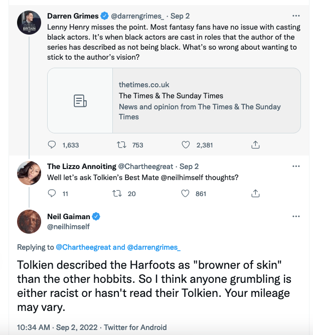 Not sure what I think of Arya’s ending … I suppose it makes a certain amount of sense, as eight seasons’ worth of learning to fight and kill has rendered her unfit for any role besides hired assassin—which, of course, being a basically decent person and having rejected her membership in the Faceless Men besides, is not really a career option. So … she now means, like Tennyson’s Ulysses, “To sail beyond the sunset, and the baths / Of all the western stars, until I die”? Or is it meant more as an evocation of the end of The Lord of the Rings, in which Frodo, too marred by his experiences as the ring-bearer, departs for the west across the sea? I suppose it’s a sentimentally symbolic choice, which means it’s entirely out of step with the sensibility of GoT.