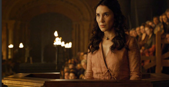 Oberyn is more and more becoming an intriguing character. Obviously Tyrion’s trial is the most spectacular part of this episode, but I loved the little exchange between Oberyn and Varys. It was very reminiscent, deliberately so, of Varys’ verbal fencing with Littlefinger. But where Baelish and Varys were politely implacable enemies, we don’t entirely know Oberyn’s intentions … and he doesn’t know Varys’, as we see in his somewhat clumsy attempt to feel him out. It is made very clear just why Varys is such a formidable player: like Littlefinger, Oberyn is ruled by desire. Where Littlefinger’s is focused, Oberyn’s are more diffuse and hedonistic; but in both cases, neither person can quite understand Varys, who is not ruled by his passions.