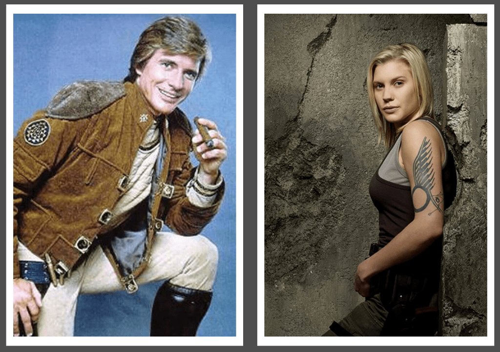 This last change did not sit well with the original Starbuck, played by Dirk Benedict, whom you may also remember as “Faceman” Peck from The A-Team (though you could be forgiven if you don’t remember him from anything else). Benedict seems to have gone the route of other 80s actors of limited fame who re-emerge as conservative culture warriors. Benedict penned a blog post titled “Lt. Starbuck … Lost in Castration” some time around 2008, in which he excoriates the new version for feminizing the cigar-smoking, roguish lothario he played, and for otherwise being the embodiment of a world in which “40 years of feminism have taken their toll,” and the “war against masculinity has been won.”